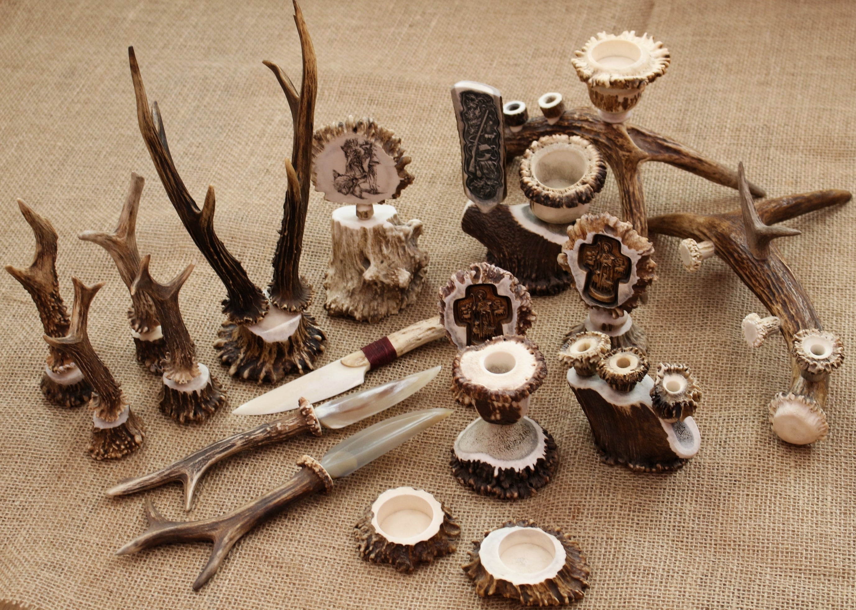 In our collection, we also have unique sewing buttons. These sewing buttons we usually sell in pairs, or by piece, because of their unique designs. We make them from deer antler, moose antler and some of them from cattle bone.