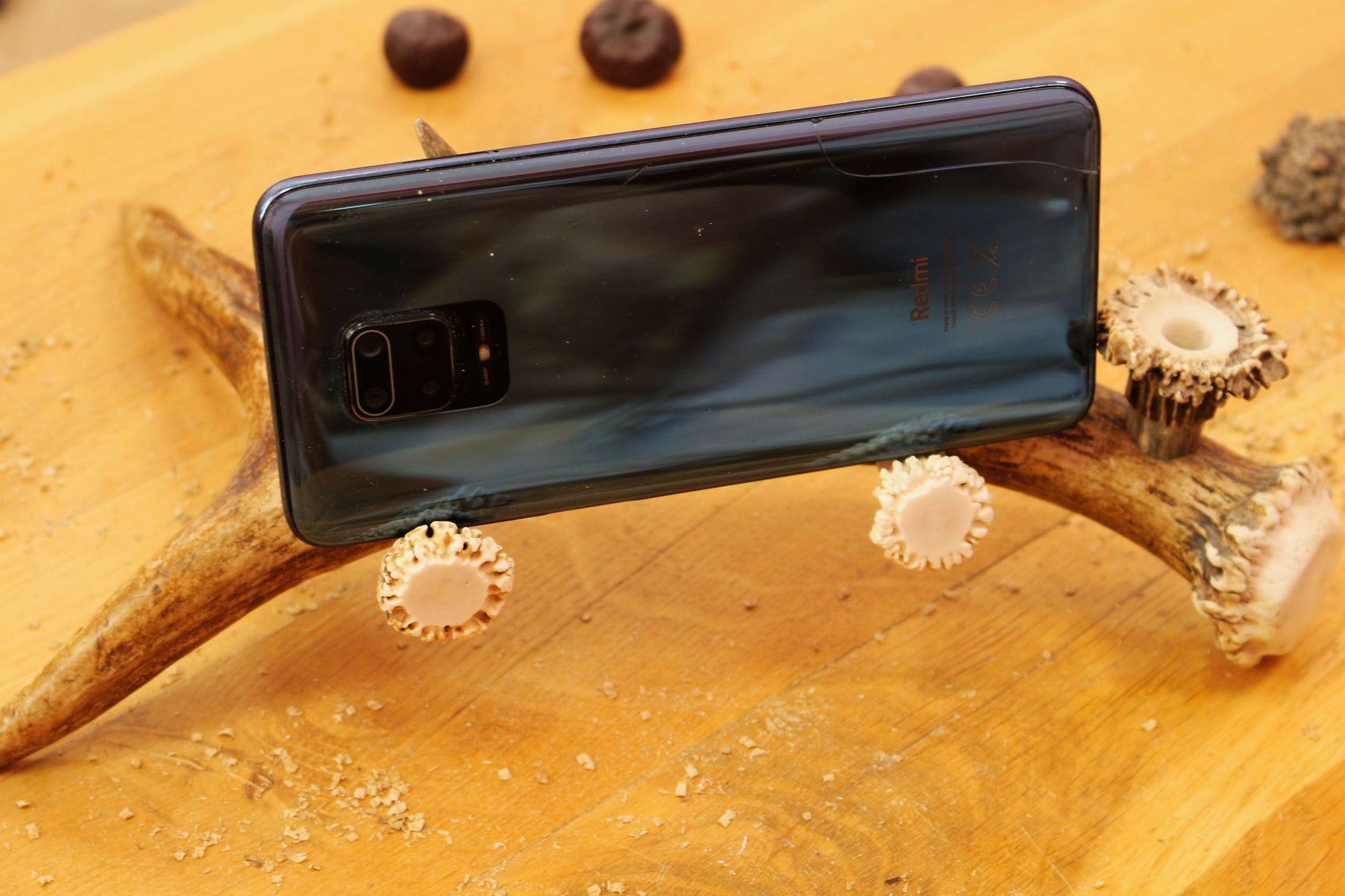 Cool and unique phone stand, that's not very seen anywhere else, handmade from real natural moose antler, with few extra pieces attached that are made from real natural deer antler.