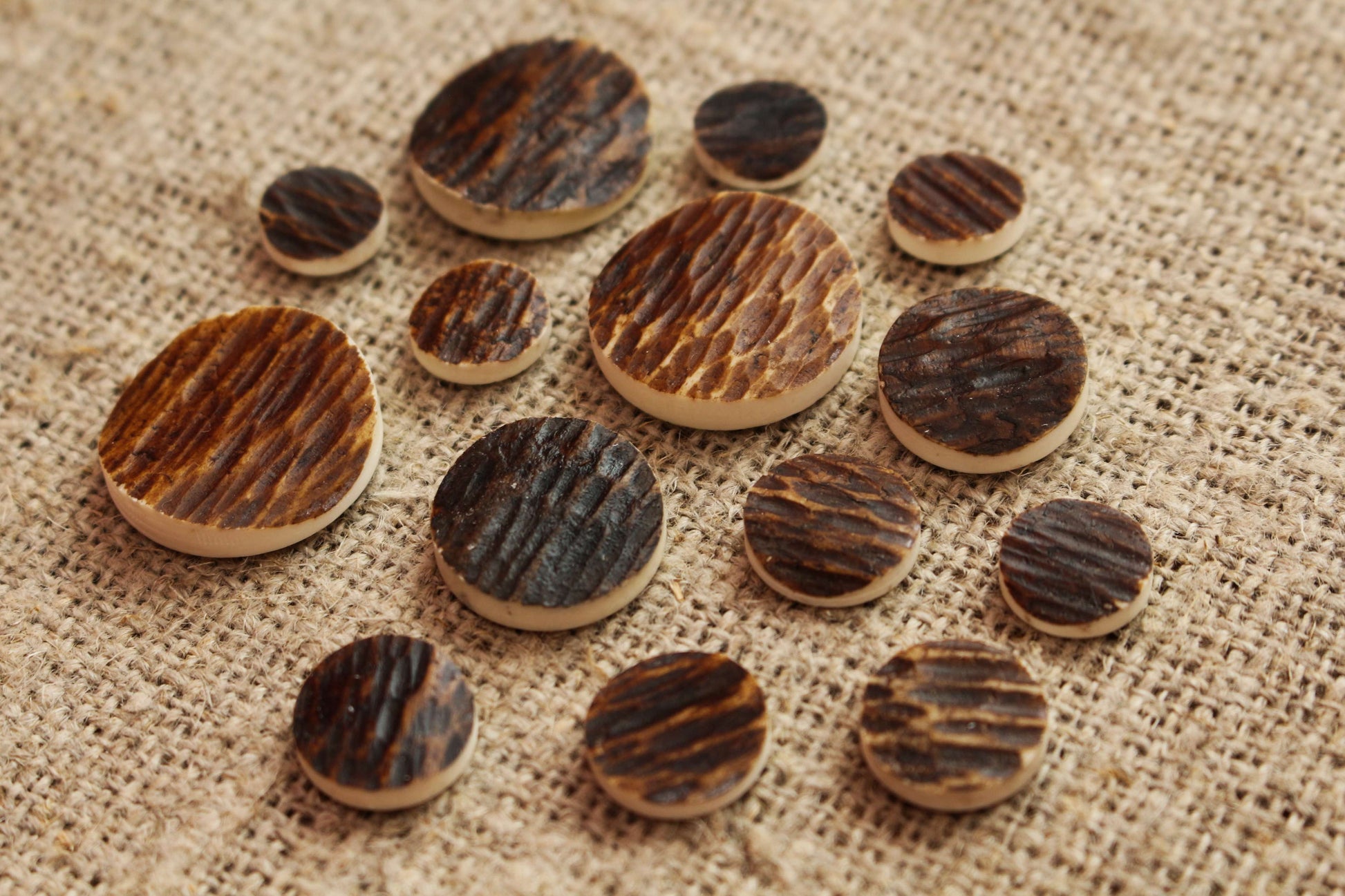 If you're crafty, try making your own bone sewing buttons model! This product is without holes, it is just a blank, you can add your finishing touches and make the buttons how you want. Also, please note that this is made from cattle bone, we only made the color and texture look like it is made from deer antler. Available in sizes ranging from 10 mm to 30 mm, these blanks are versatile for various clothing projects.