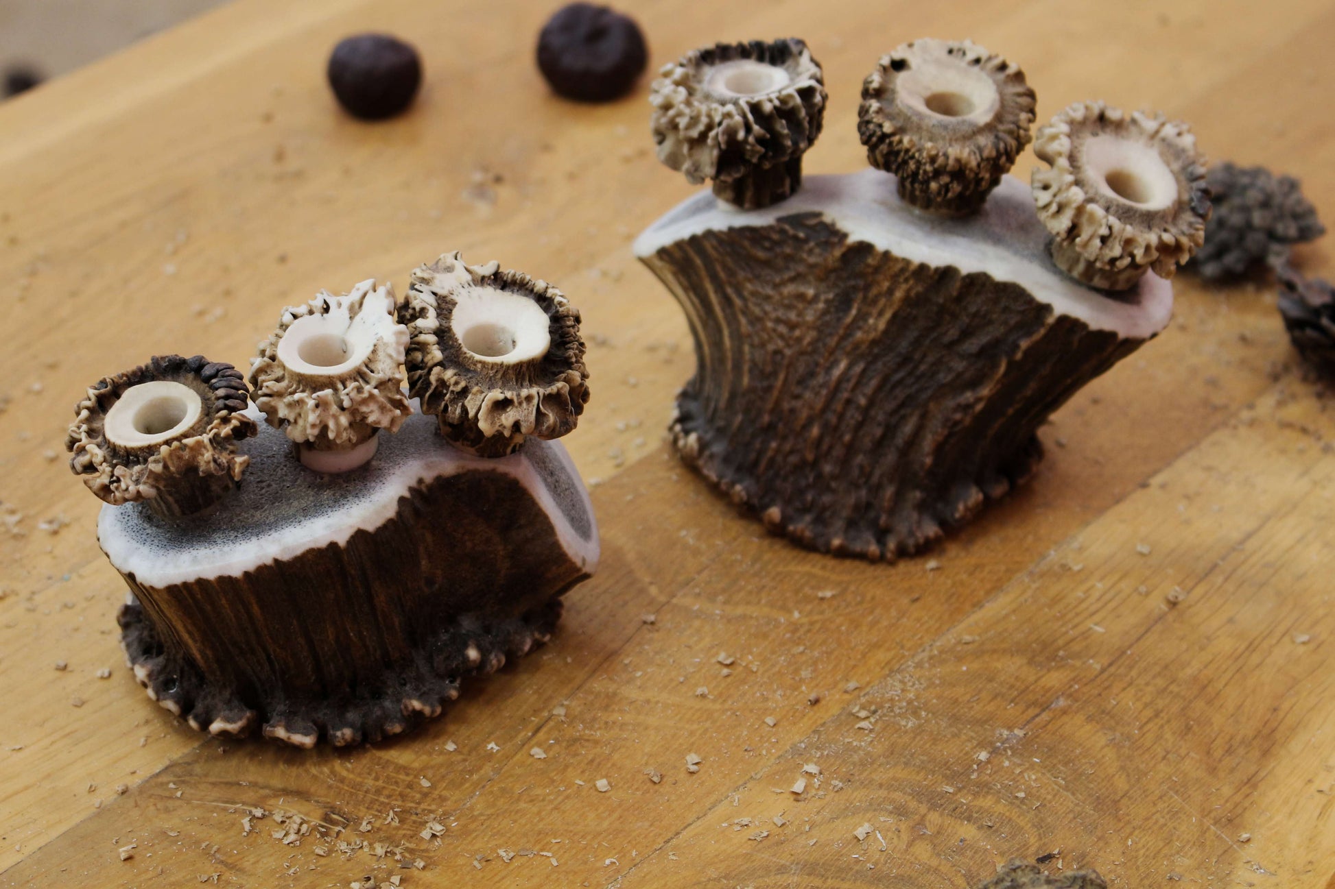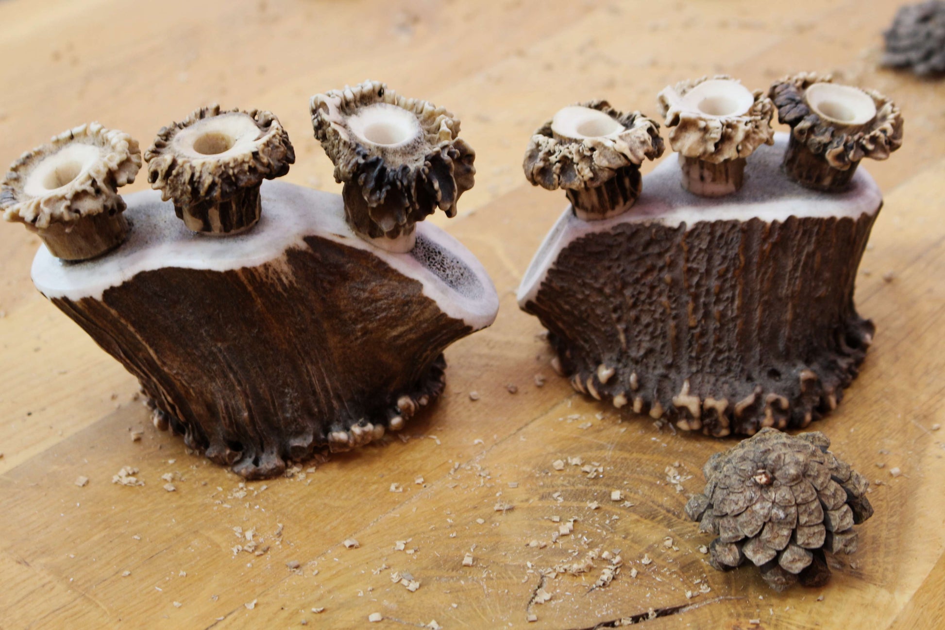 Unique pen holders made from real deer antler, perfect additions for home decor. The two pieces are different is sizes, one is smaller the other is bigger.